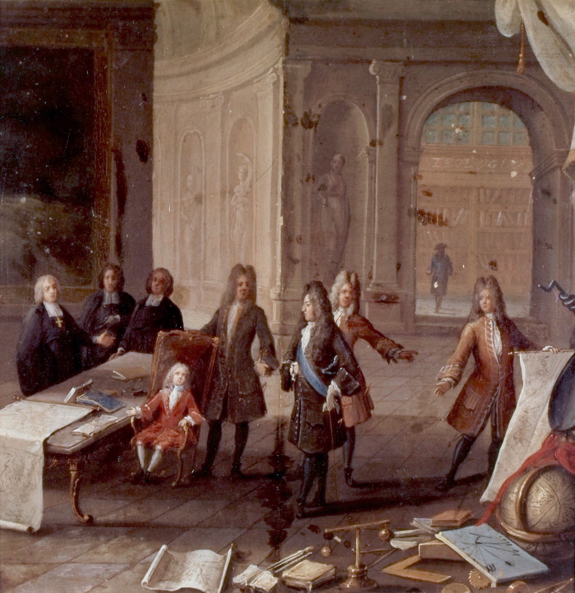 Pour éviter d'être plus tard mal-jugés ou de tomber dans l'oubli comme les premiers souverains francs, les Bourbons décident de faire écrire l'Histoire de leur vivant. Les historiographes de l'Académie des Inscriptions et des Belles lettres, sont employés à porter le souvenir du roi à la postérité en privilégiant bien évidemment des récits héroïques, les succès sur la scène politique, sur le plan économique et dans le domaine des sciences et des arts. Le frontispice sur les rapports publiés annuellement par l'Académie, que ce soit à l'époque de Louis XIV puis de Louis XV (portraits présents dans les médaillons), rappelle le rôle important de cette Institution dans l'écriture de l'histoire des Bourbons.