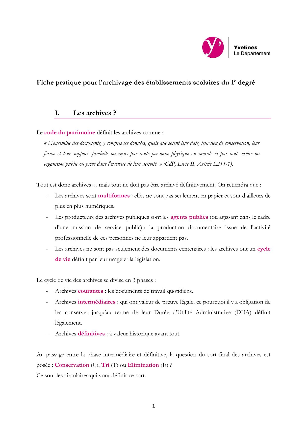 Afin de faciliter votre archivage, des fiches pratiques spécifiques aux types d'établissements sont mises à disposition par les Archives Départementales. Des tableaux de gestion des archives vous seront prochainement proposés.
