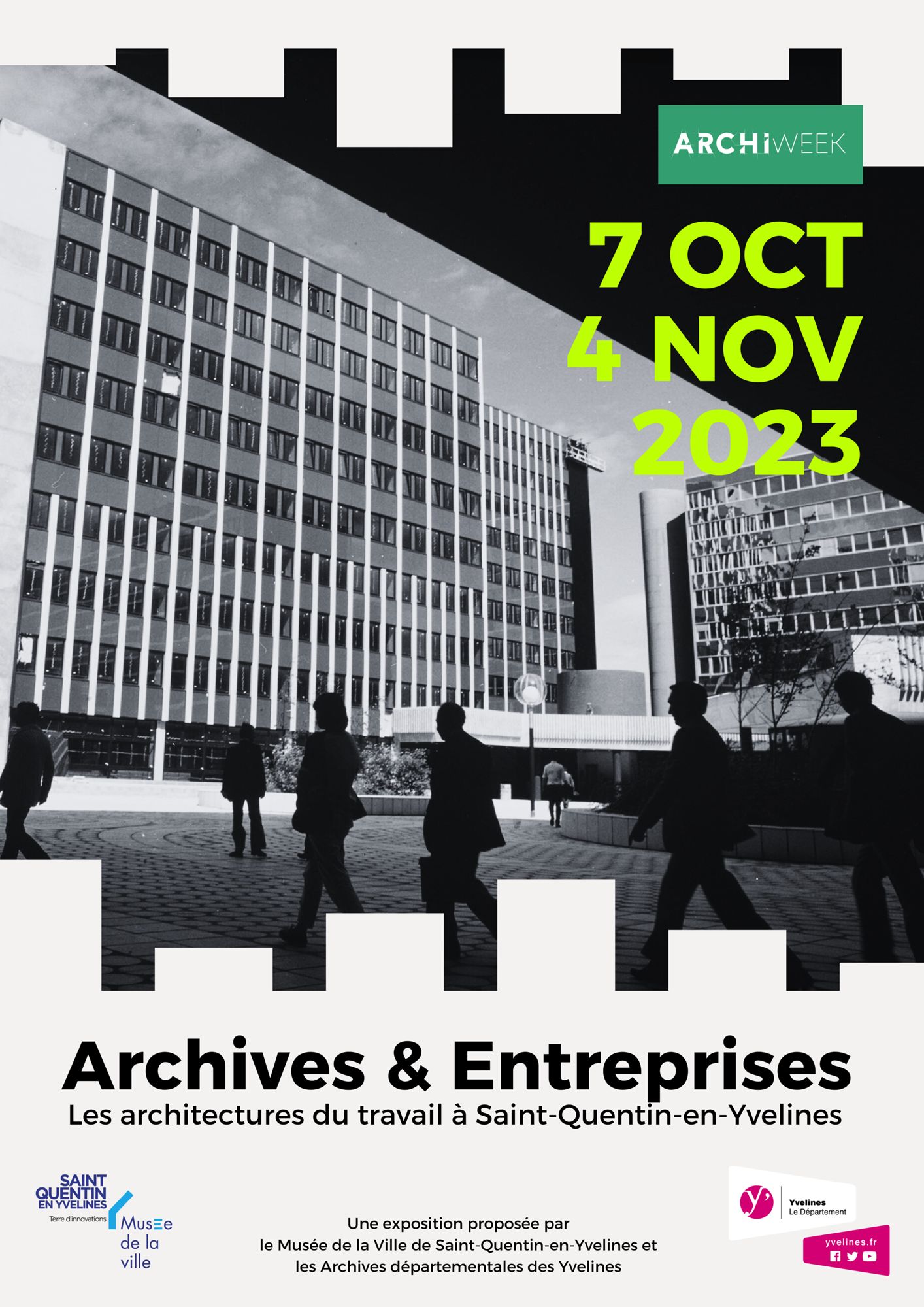 Les Archives départementales sont partenaires de l'événement Archiweek organisé par le Musée de la ville de Saint-Quentin-en-Yvelines. Après sa première édition en juin 2022 sur le thème de l’habitat, l’événement Archiweek se penche cette année sur l’immobilier remarquable d’entreprise à l’occasion des Journées nationales de l’architecture .