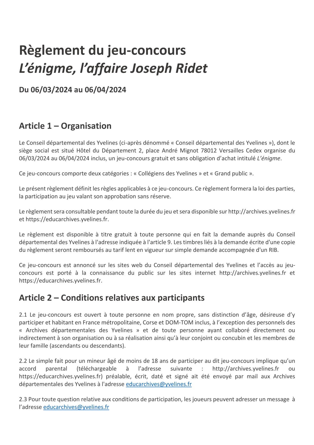 Le concours récompensera 30 gagnants dans la catégorie "grand public" et 30 binômes de collégiens dans la catégorie "collégiens des Yvelines". Lisez le règlement pour découvrir les lots mis en jeu dans chacune des catégories.