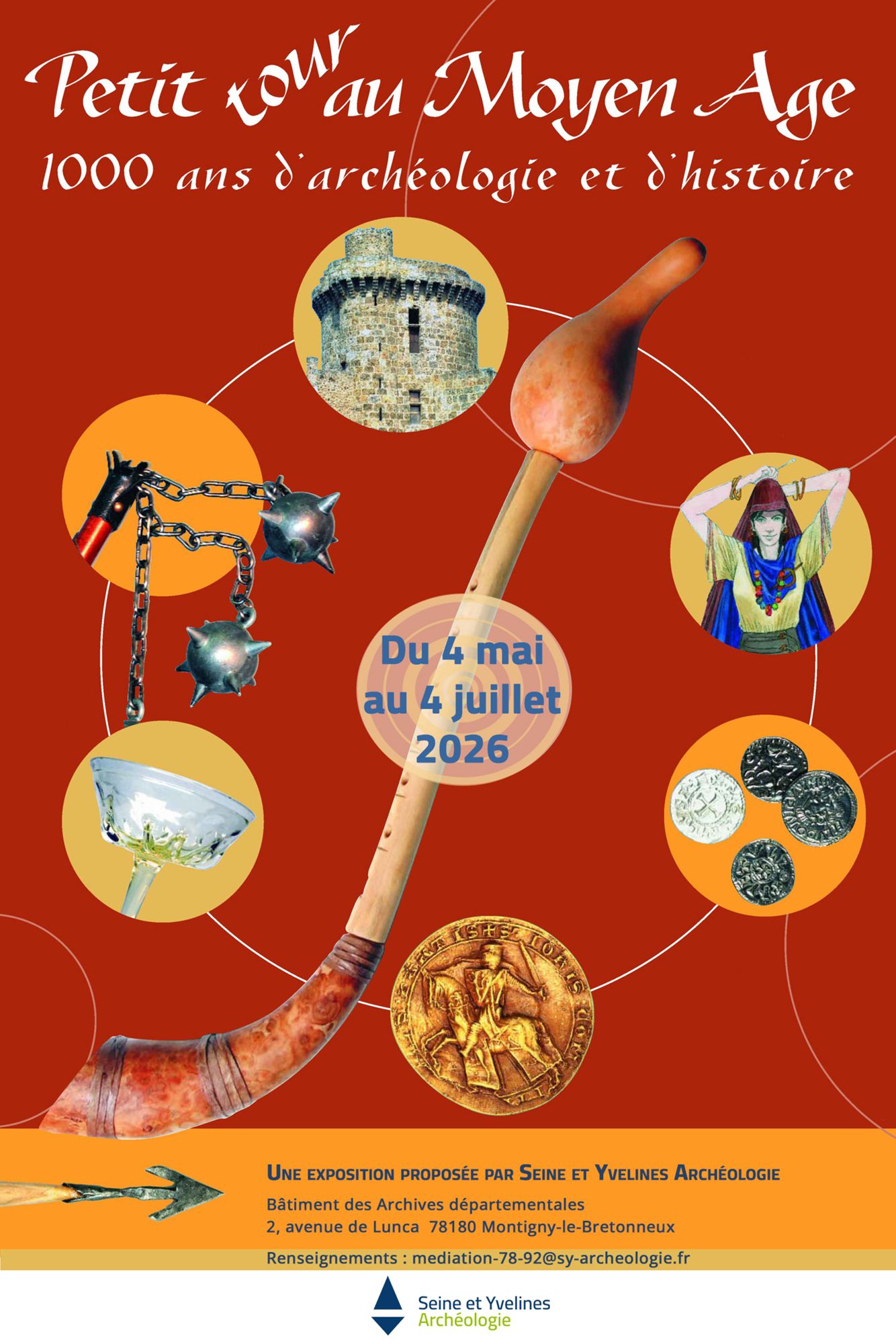 Seine Yvelines Archéologie vous propose un petit tour dans la vie quotidienne des Yvelinois et des Alto-séquanais entre le Ve et le XVe siècle. Sur la base de découvertes archéologiques récentes, une exposition synthétique, à la fois visuelle et pédagogique, est installée à Montigny-le-Bretonneux dans le bâtiment des Archives départementales.