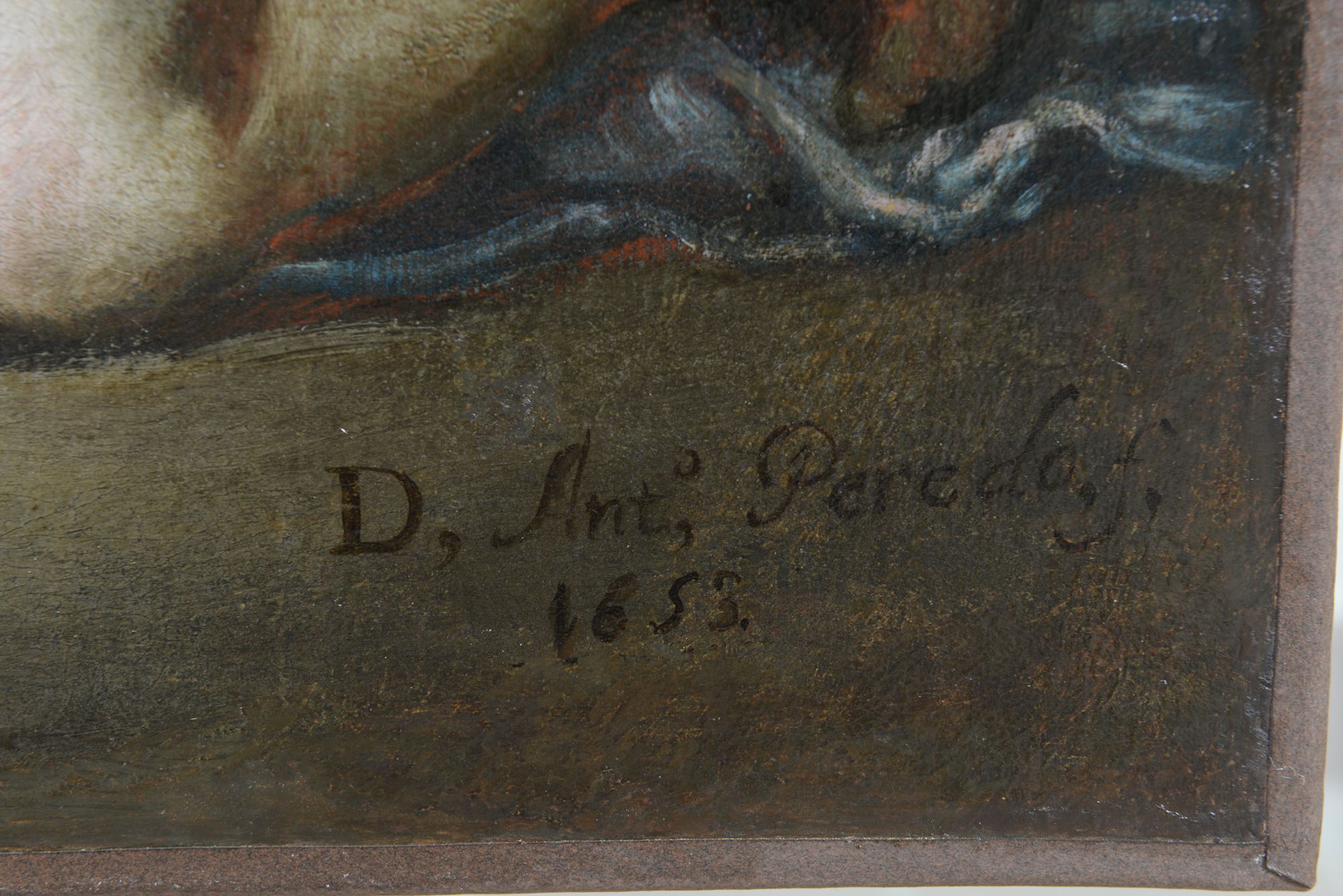 Antonio de Pereda (1599 - 1669) est un peintre espagnol de la première génération baroque madrilène, réputé pour un dessin solide et une exécution habile, qu’il emploie dans de nombreuses compositions religieuses et allégoriques, mais également dans la réalisation de natures mortes d’une exceptionnelle qualité. Doué, Pereda est admis très jeune dans l’atelier de Pedro de las Cuevas. Et c’est grâce à la protection de ses mécènes, tel que Giovanni Battista Crescenzi, peintre et architecte italien vivant à la cour d’Espagne, qu’il obtient de nombreuses commandes religieuses. Ses œuvres sont aujourd’hui essentiellement conservées dans les musées français et étrangers tel le Louvre ou le Prado. Trois de ses tableaux sont toutefois classées au titre des monuments historiques et signalées dans la base POP comme étant conservées dans des édifices religieux : La Rédemption (église d’Arc - et - Senans), Le Mariage de la Vierge (église Saint - Sulpice à Paris) et l’Annonciation(église Saint - Pierre de Grand - Camp dans l’Eure).