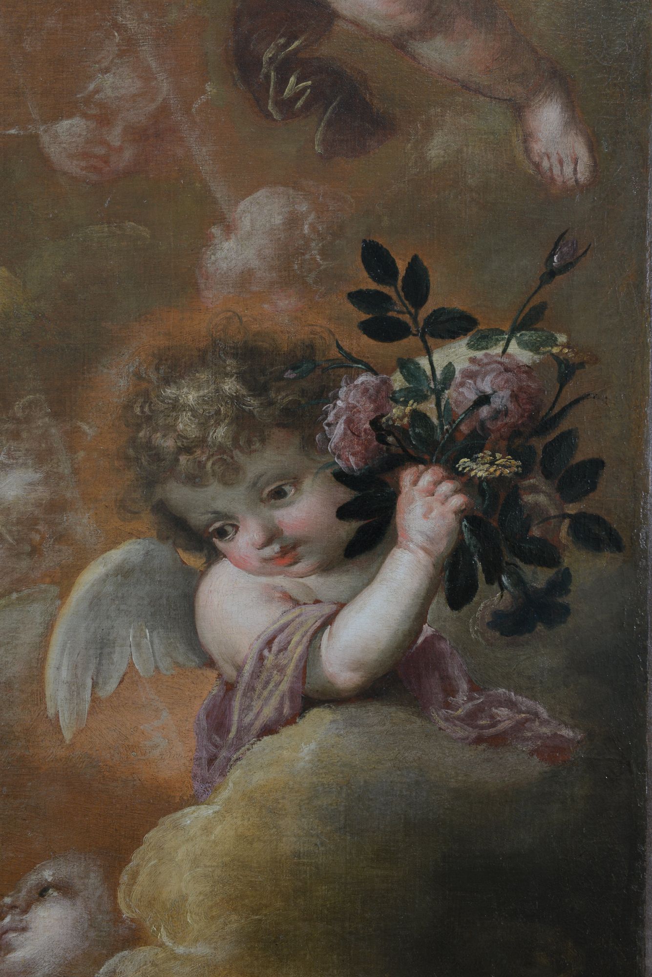 Si de nombreuses peintures figurant cette iconographie sont connues dans sa production, la version la plus proche de celle de Garancières est celle visible actuellement au musée d’art de Bucarest. Mais, contrairement à celle de la commune yvelinoise, l’œuvre de Bucarest n’est ni datée ni signée et fut longtemps attribuée à Juan de Valdés Leal (1622 - 1690), peintre baroque espagnol, qui influença très certainement Pereda. Cette version se distingue de l’œuvre de Garancières, par la couleur du vêtement de la Vierge (rouge dans notre version et violette dans la version roumaine) mais aussi, notamment, par le positionnement et le nombre de têtes d’angelots situées dans la partie droite du tableau. On retrouve, en revanche, dans l’œuvre de Garancières, tout comme dans celle de Bucarest, toutes les spécificités du style de Pereda dans la palette chromatique utilisée pour l’arrière-plan, dans le dessin et les couleurs mais aussi dans la manière de traiter les plis du manteau de la Vierge.