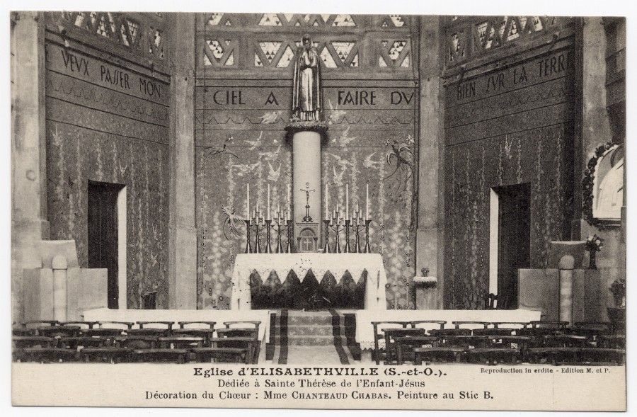 Les prochains travaux prévus dans l'église Sainte Thérèse d'Elisabethville à Aubergenville sont l'occasion de mettre l'éclairage sur les peintures des églises de béton construites entre les deux guerres. En effet, les problèmes chimiques posés par le béton ont mis au défi les artistes : découvrez quelques une des solutions mises en oeuvre...