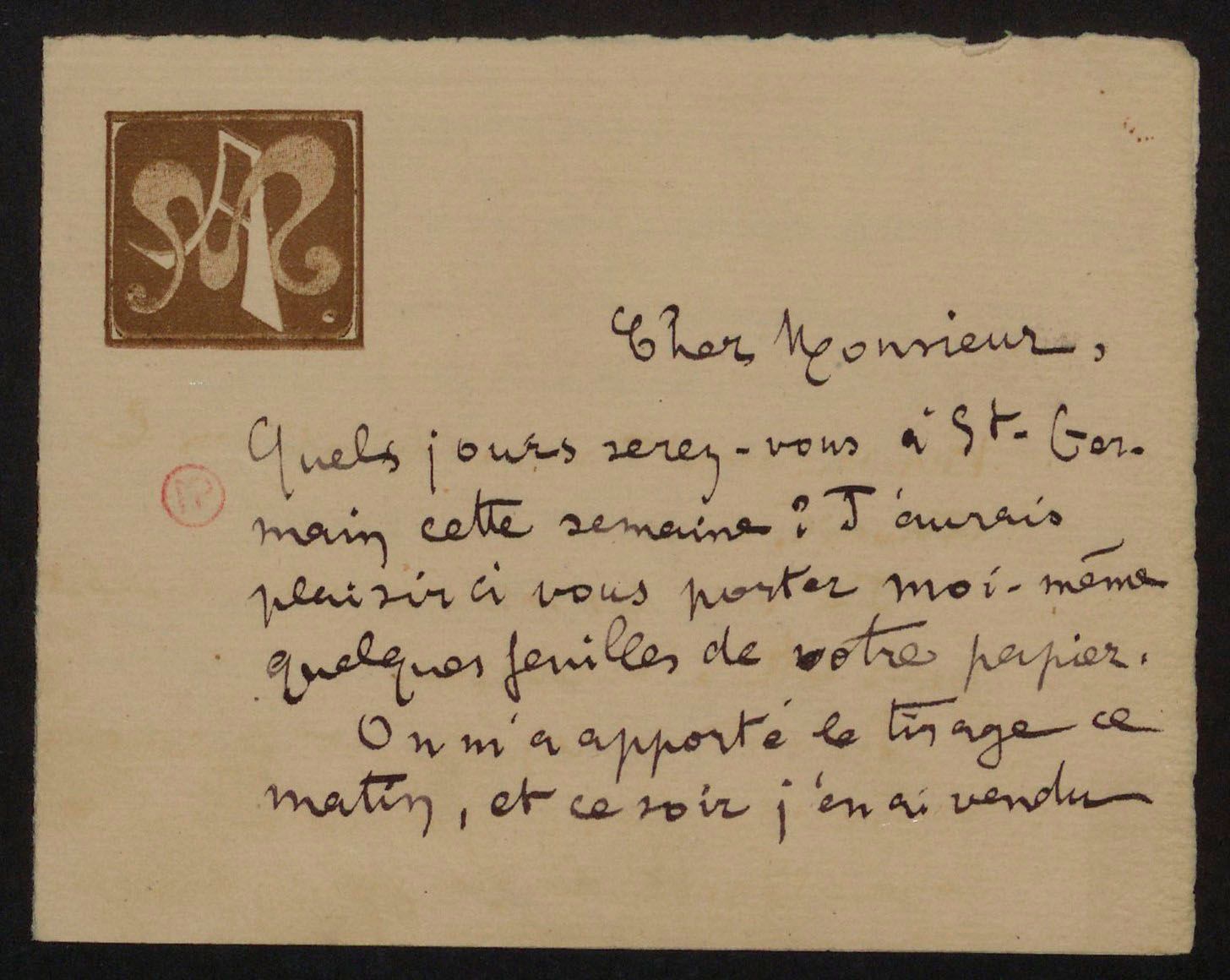 - MARTY André. - Lettre autographe signée à Maurice Denis