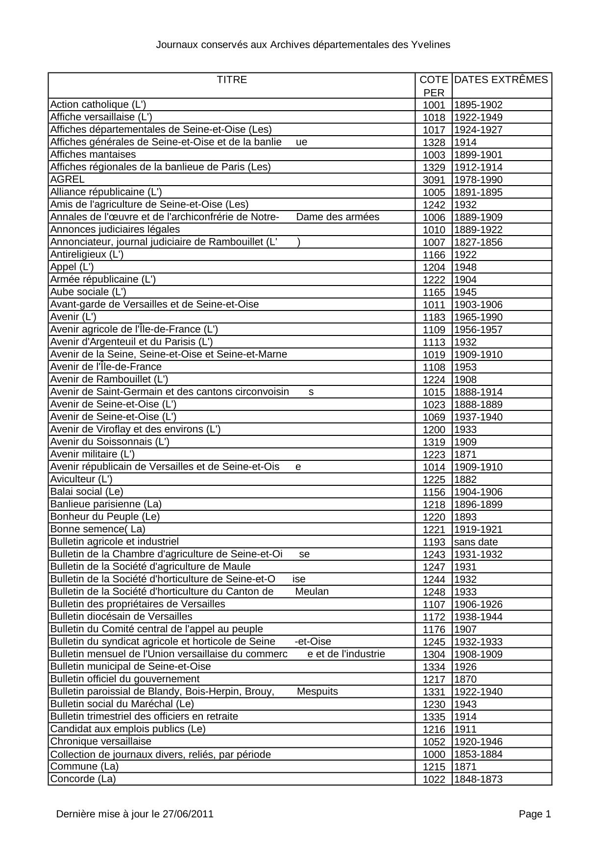 Journaux consultables actuellement et prochainement