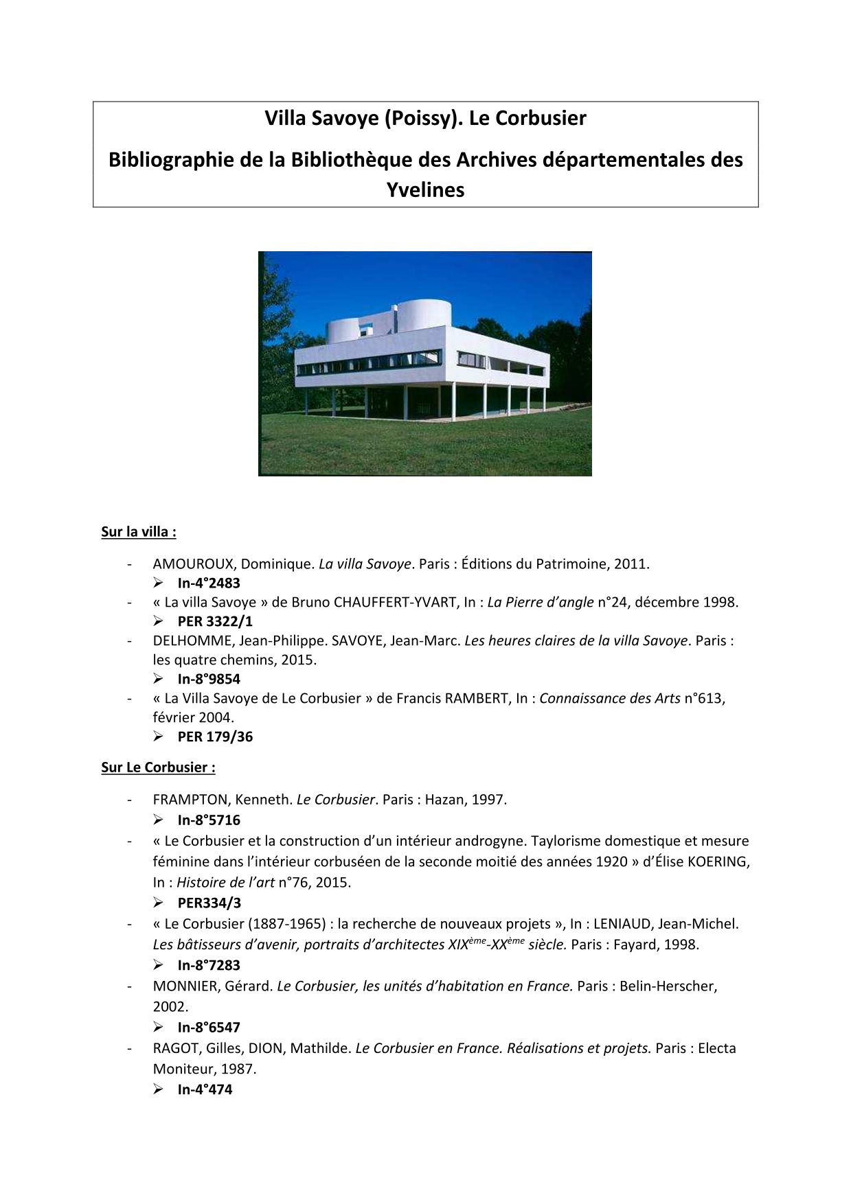 A l'occasion de l'inscription au Patrimoine Mondial de l'Unesco en juillet de la villa Savoye de Le Corbusier, la Bibliothèque explore ses collections pour vous proposer une série d'ouvrages et d'articles sur la question