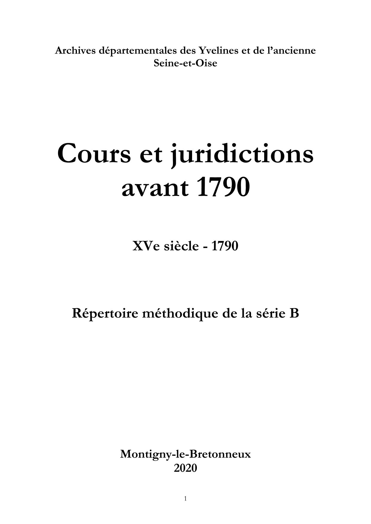 Les Archives départementales des Yvelines proposent deux types d'accès à l'instrument de recherche de la série B, via l'agrégateur de données en ligne France Archives ou via un document PDF.
