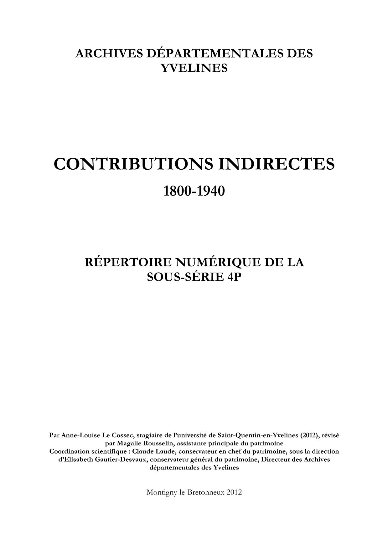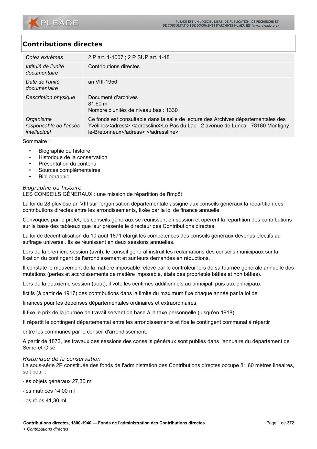 Les Archives départementales des Yvelines proposent deux types d'accès aux sous-séries 1P, 2P, 4P, 6P :
