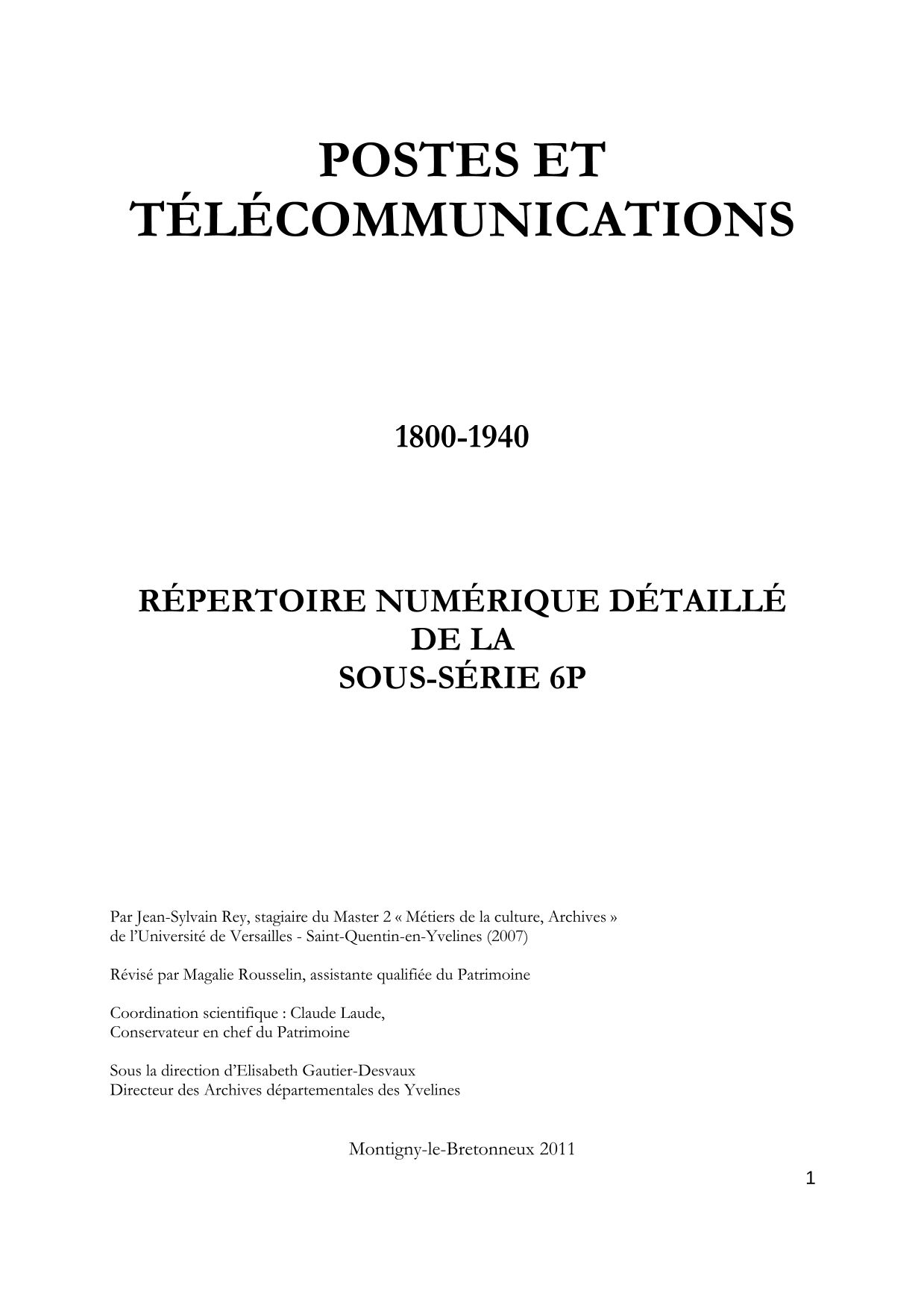 La série P des Archives départementales des Yvelines se subdivise en 6 sous-séries :