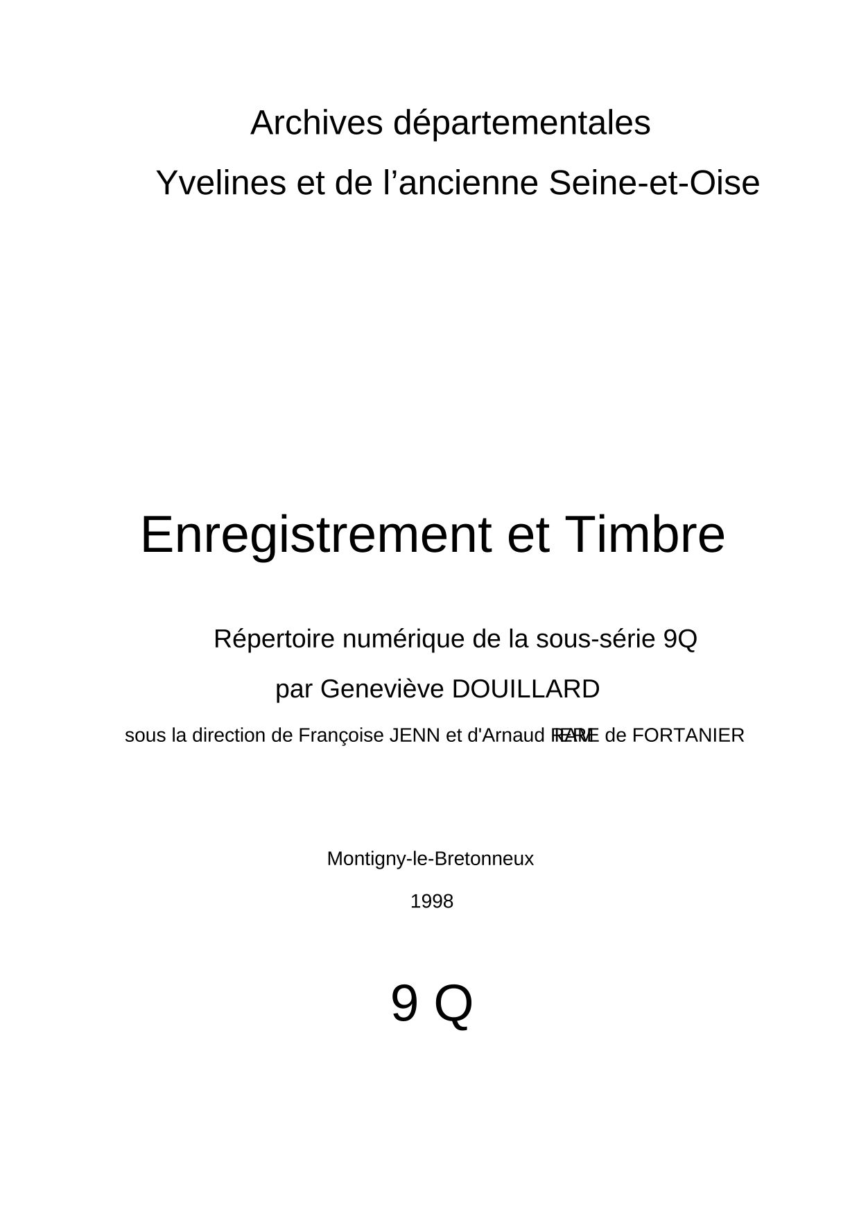 Les Archives départementales des Yvelines proposent deux types d'accès à l'instrument de recherche de la sous-série 9Q (jusqu'en 1900) :