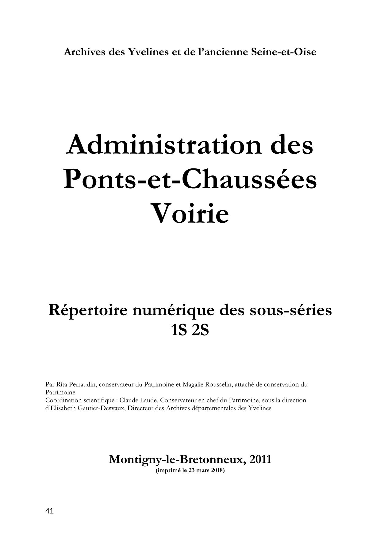 - 1S Administration des Ponts-et-Chaussées : personnel, comptabilité;