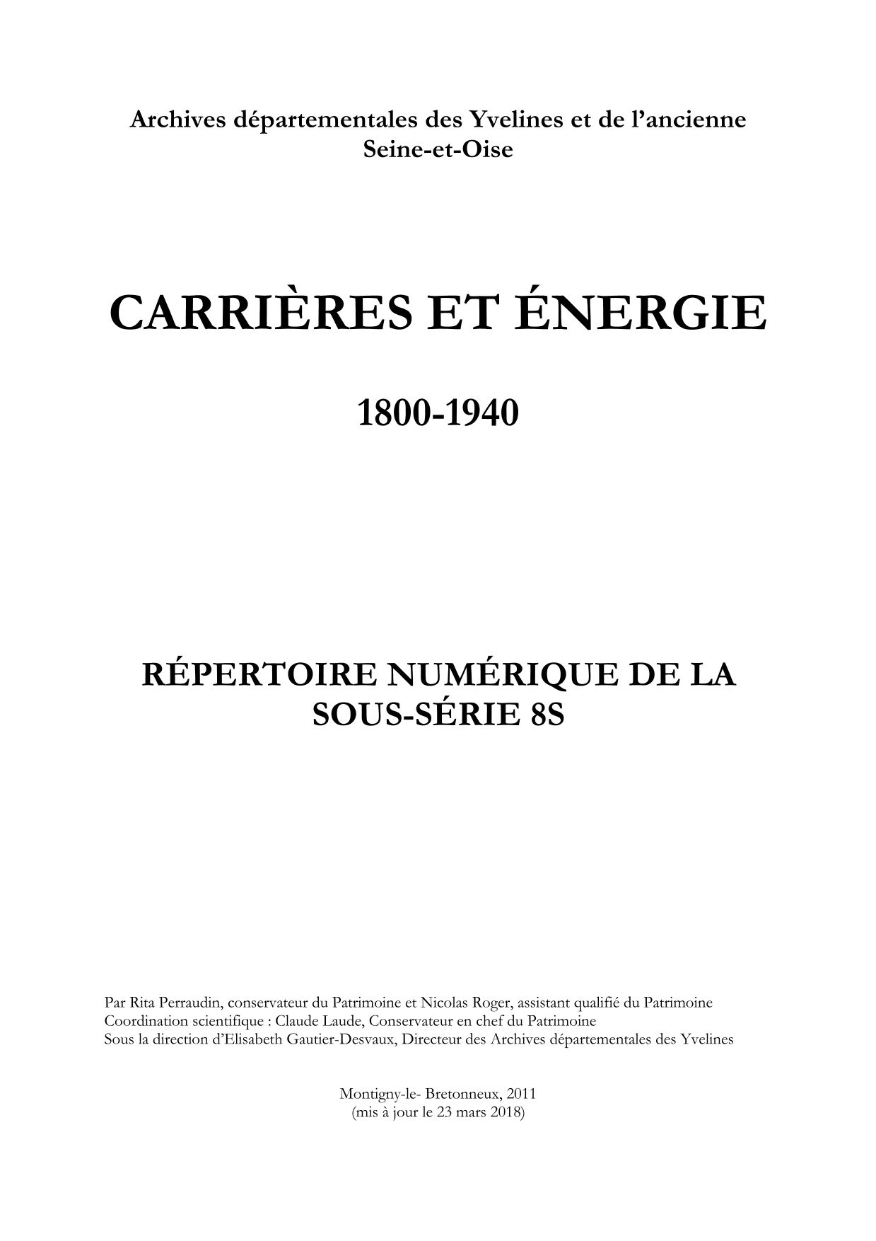 Les mines sont inexistantes dans les Yvelines; on retrouve surtout dans cette sous-série des dossiers relatifs aux carrières souterraines, très nombreuses dans le département.