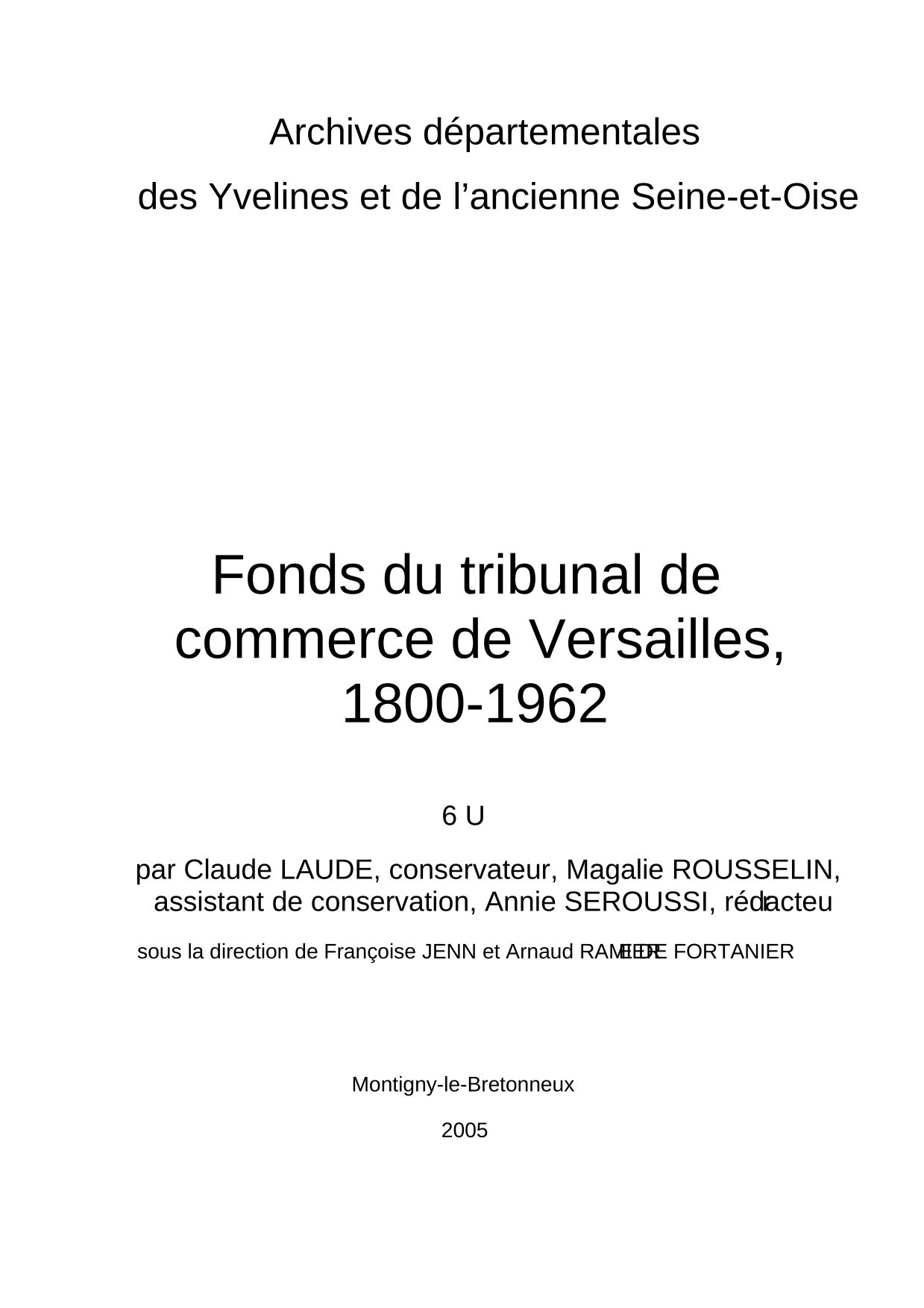 - 6U Tribunal de commerce de Versailles (1800-1962) : registres du commerce et des sociétés, dossiers de faillite; A noter : les tribunaux civils de Mantes et Rambouillet avaient également une compétence commerciale sur leur ressort.