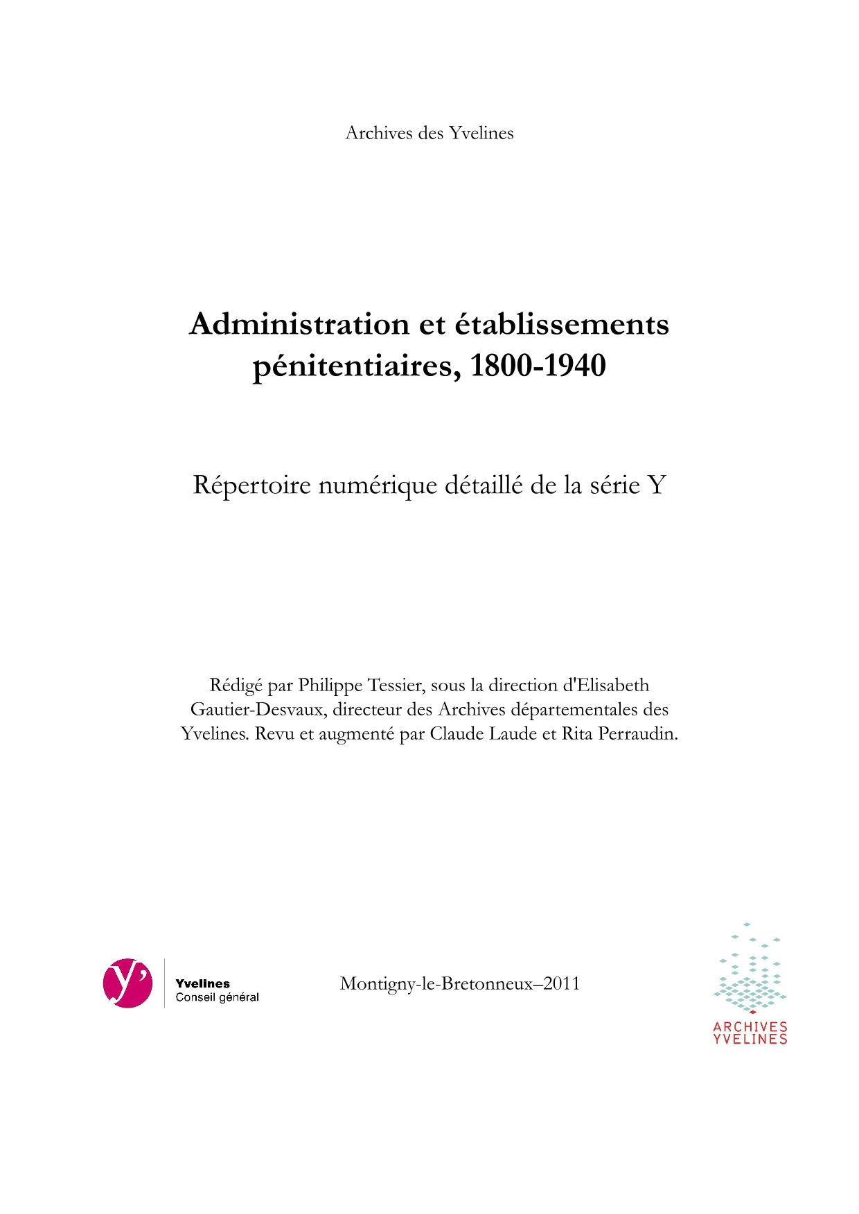La série Y rassemble des dossiers d'affaires générales et des registres d'écrou de la maison centrale de Poissy, des prisons de Mantes et de Rambouillet et de la maison d'arrêt de Versailles. Elle suit le cadre de classement réglementaire, composé de 2 sous-séries :